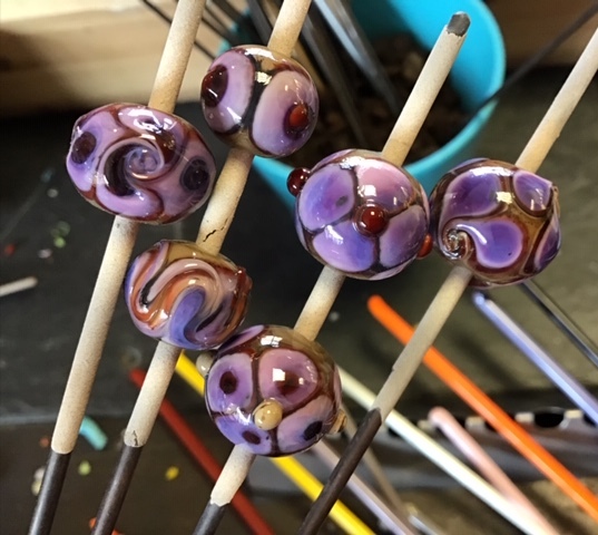 Good question, in short it’s like mini glass blowing, without the blowing. Lampworking or flameworking as it’s sometimes called, is the process of melting glass in a flame and manipulating the glass using tools and hand movements to create beautiful and patterned glass beads.